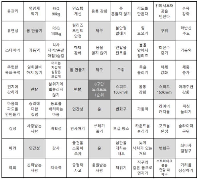 조금 찾아보신 분들은 아시겠지만 만다라트 계획표를 실천한 대표적인 사람은 일본의 오타니 쇼헤이 선수입니다.